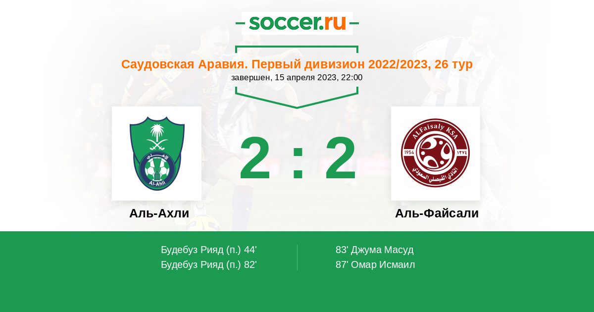 Аль-Ахли - Аль-Файсали: обзор матча 15 апреля 2023
