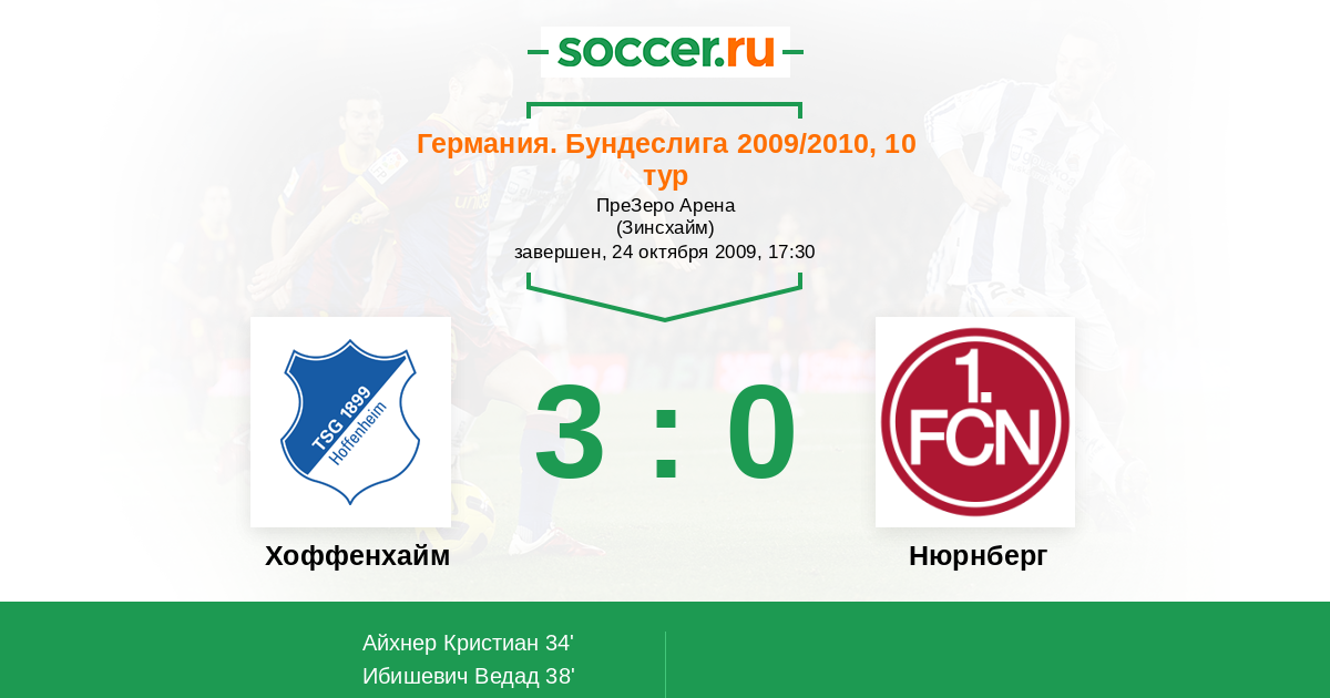 Хоффенхайм - Нюрнберг: обзор матча 24 октября 2009