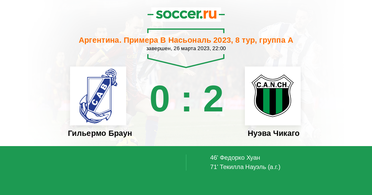Гильермо Браун - Нуэва Чикаго: обзор матча 26 марта 2023