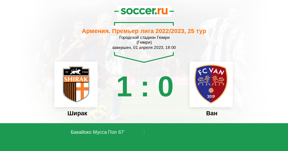 Ширак - Ван: обзор матча 1 апреля 2023