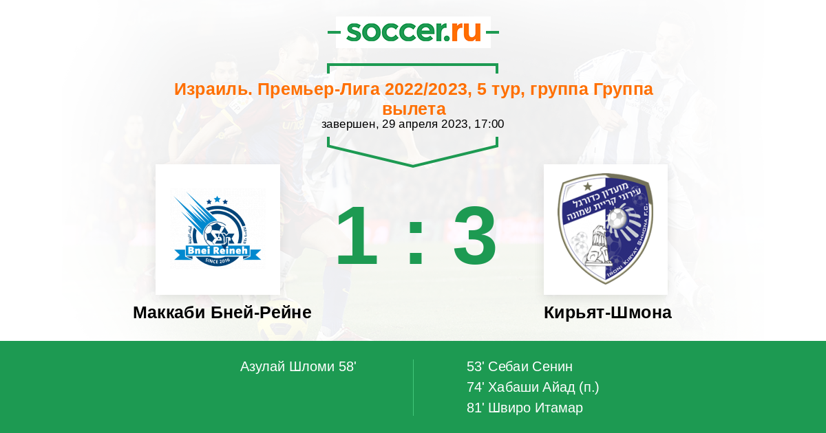 Маккаби Бней-Рейне - Кирьят-Шмона: обзор матча 29 апреля 2023