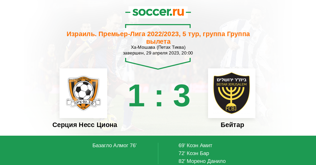 Серция Несс Циона - Бейтар: обзор матча 29 апреля 2023