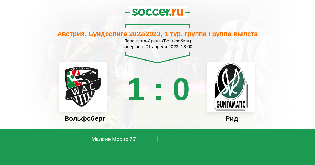 Вольфсберг - Рид: обзор матча 1 апреля 2023