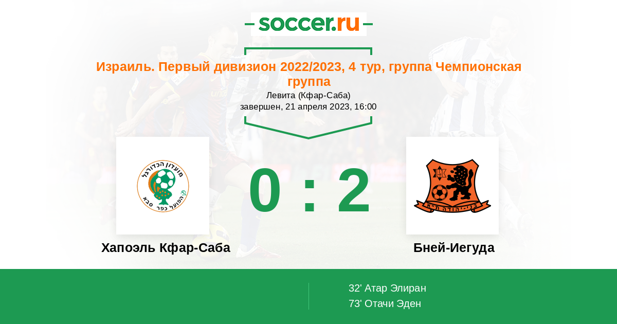 Хапоэль Кфар-Саба - Бней-Иегуда: обзор матча 21 апреля 2023