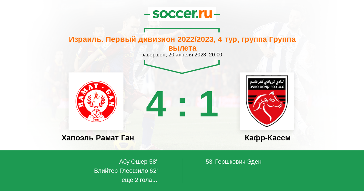 Хапоэль Рамат Ган - Кафр-Касем: обзор матча 20 апреля 2023