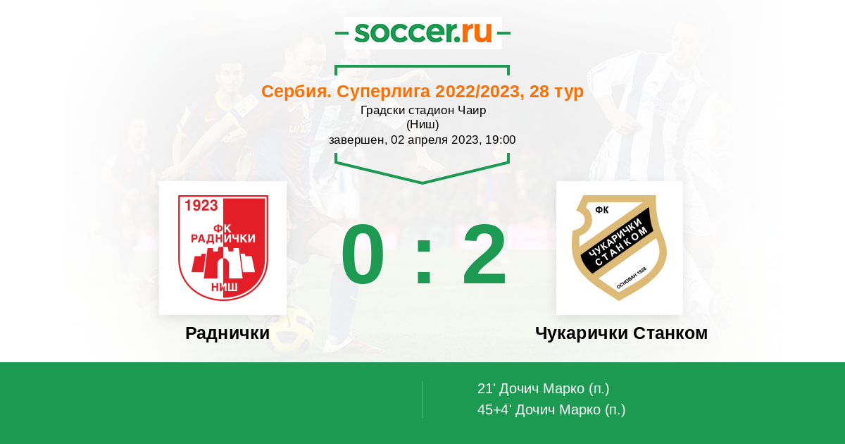 Раднички - Чукарички Станком: обзор матча 2 апреля 2023
