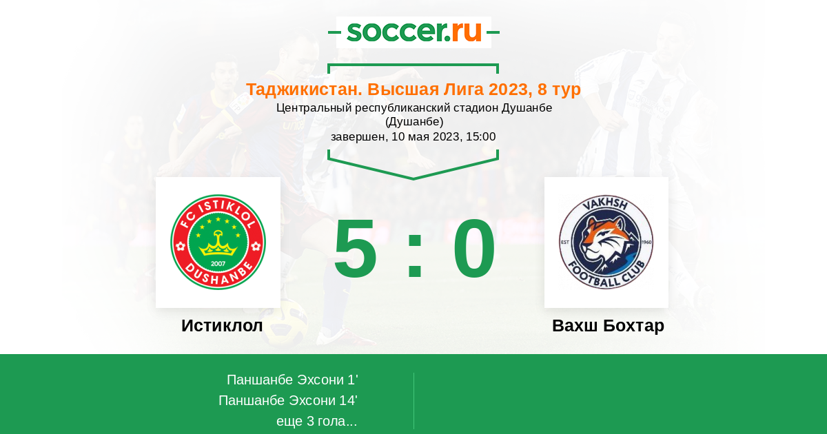Истиклол - Вахш Бохтар: обзор матча 10 мая 2023