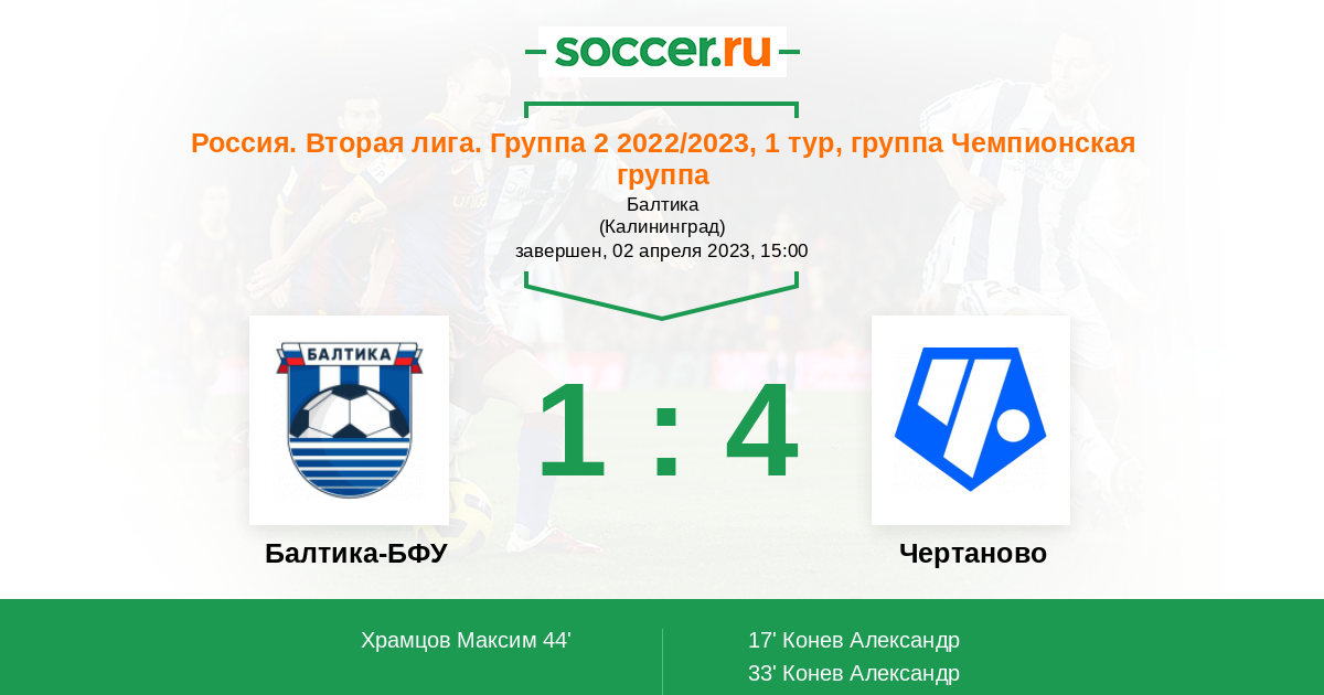 Балтика-БФУ - Чертаново: обзор матча 2 апреля 2023