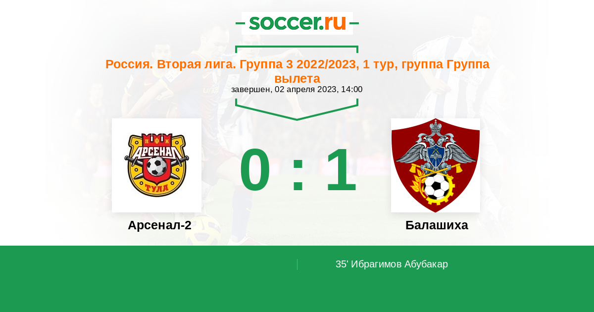 Арсенал-2 - Балашиха: обзор матча 2 апреля 2023