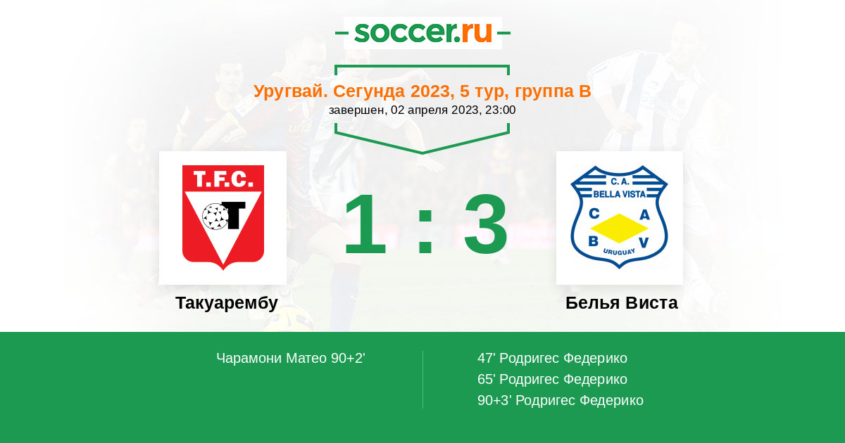 Такуарембу - Белья Виста: обзор матча 2 апреля 2023