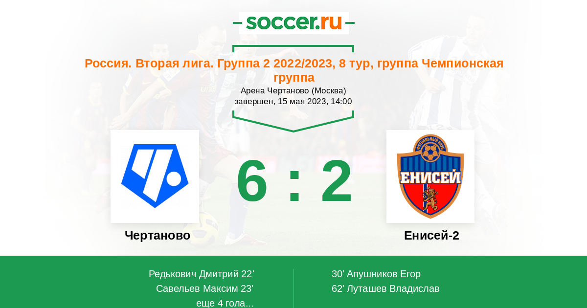 Чертаново - Енисей-2: обзор матча 15 мая 2023