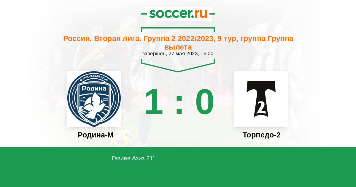 Родина-М - Торпедо-2: обзор матча 27 мая 2023