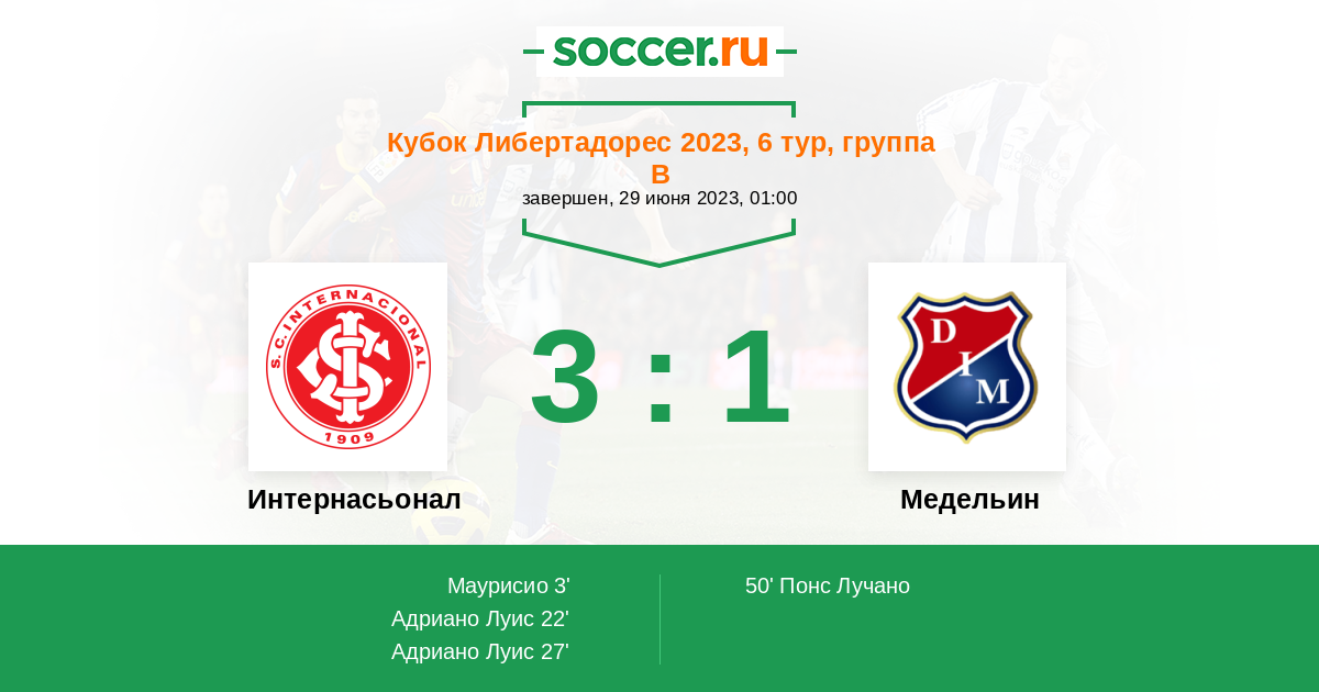 Интернасьонал - Медельин: обзор матча 29 июня 2023