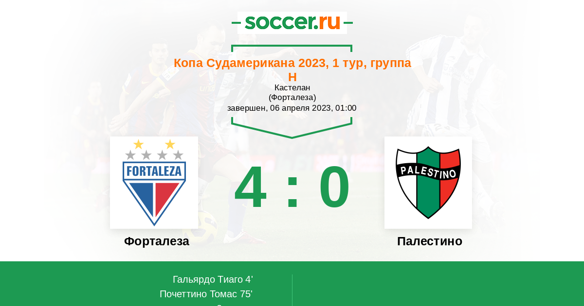Форталеза - Палестино: обзор матча 6 апреля 2023