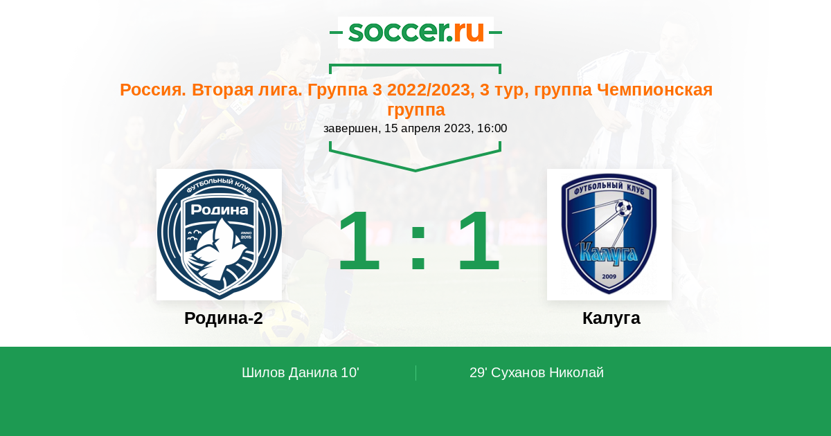Родина-2 - Калуга: обзор матча 15 апреля 2023