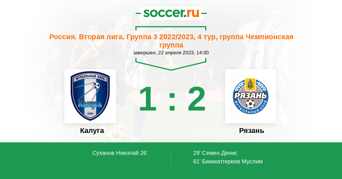 Калуга - Рязань: обзор матча 22 апреля 2023