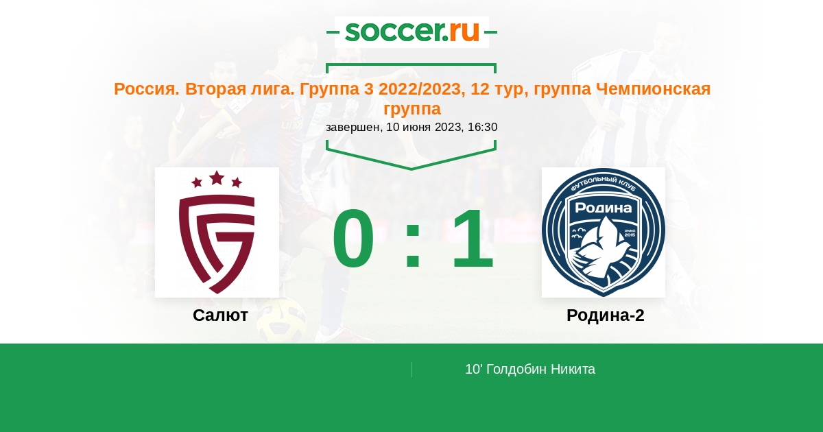 Салют - Родина-2: обзор матча 10 июня 2023