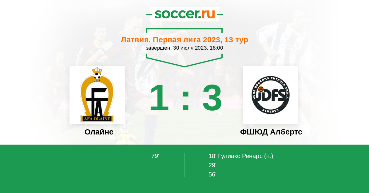 Олайне - ФШЮД Албертс: обзор матча 30 июля 2023