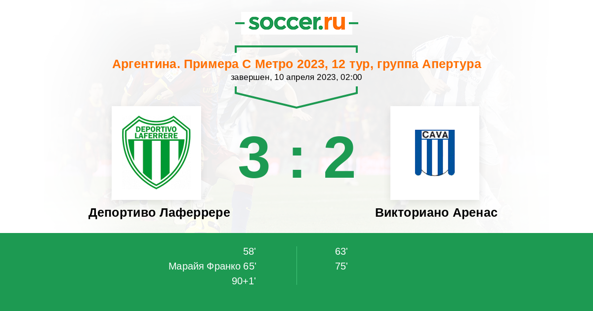 Депортиво Лаферрере - Викториано Аренас: обзор матча 10 апреля 2023