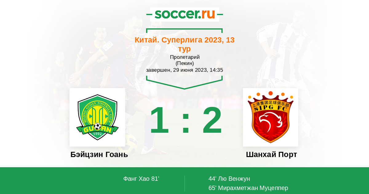 Бэйцзин Гоань - Шанхай Порт: обзор матча 29 июня 2023