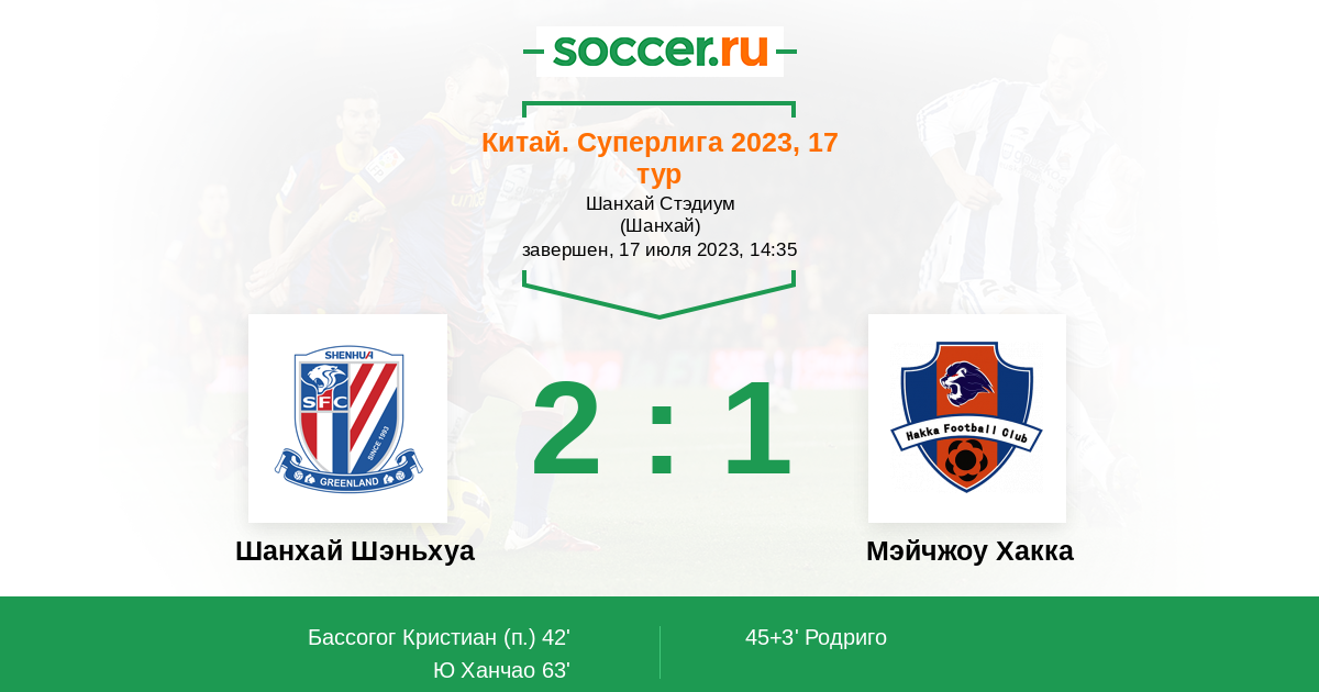 Шанхай Шэньхуа - Мэйчжоу Хакка: обзор матча 17 июля 2023
