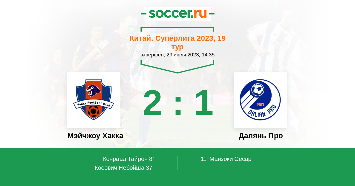 Мэйчжоу Хакка - Далянь Про: обзор матча 29 июля 2023