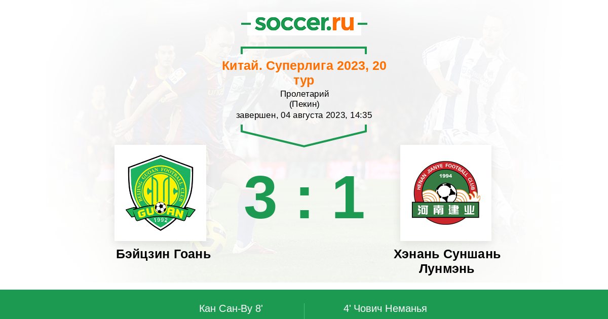 Бэйцзин Гоань - Хэнань Суншань Лунмэнь: обзор матча 4 августа 2023