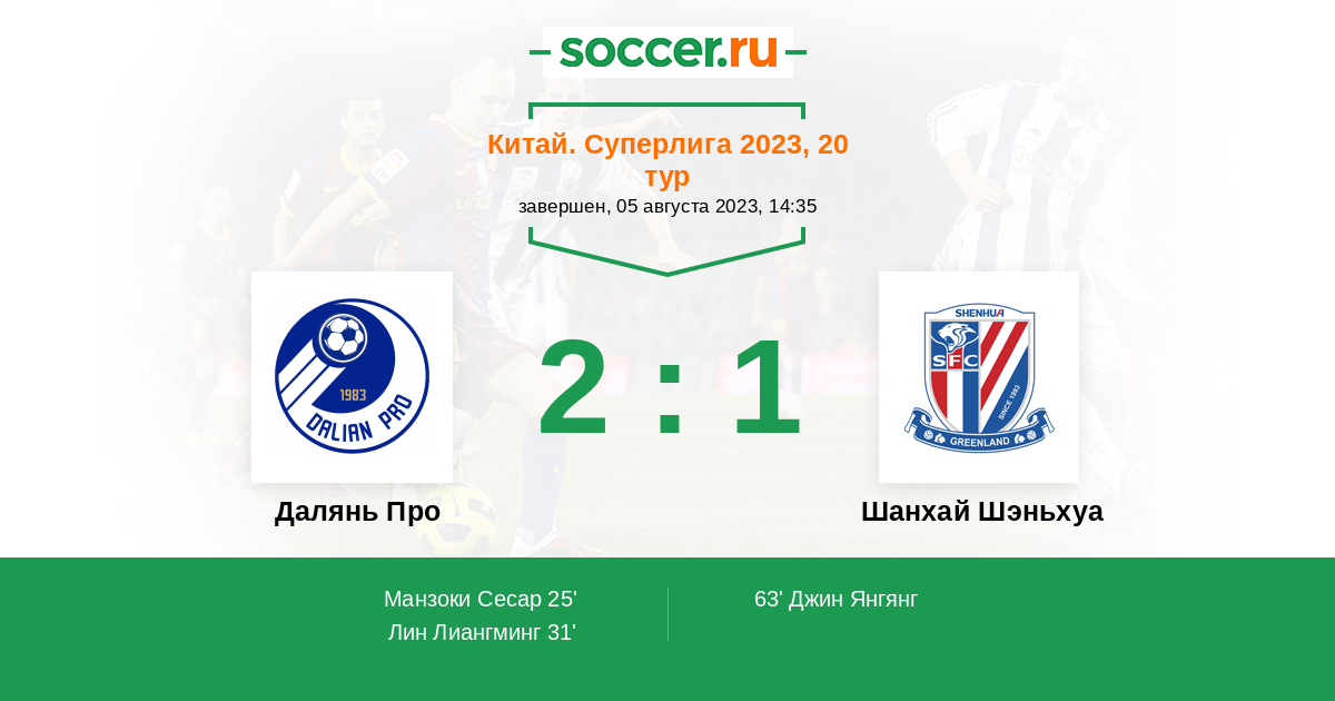 Далянь Про - Шанхай Шэньхуа: обзор матча 5 августа 2023