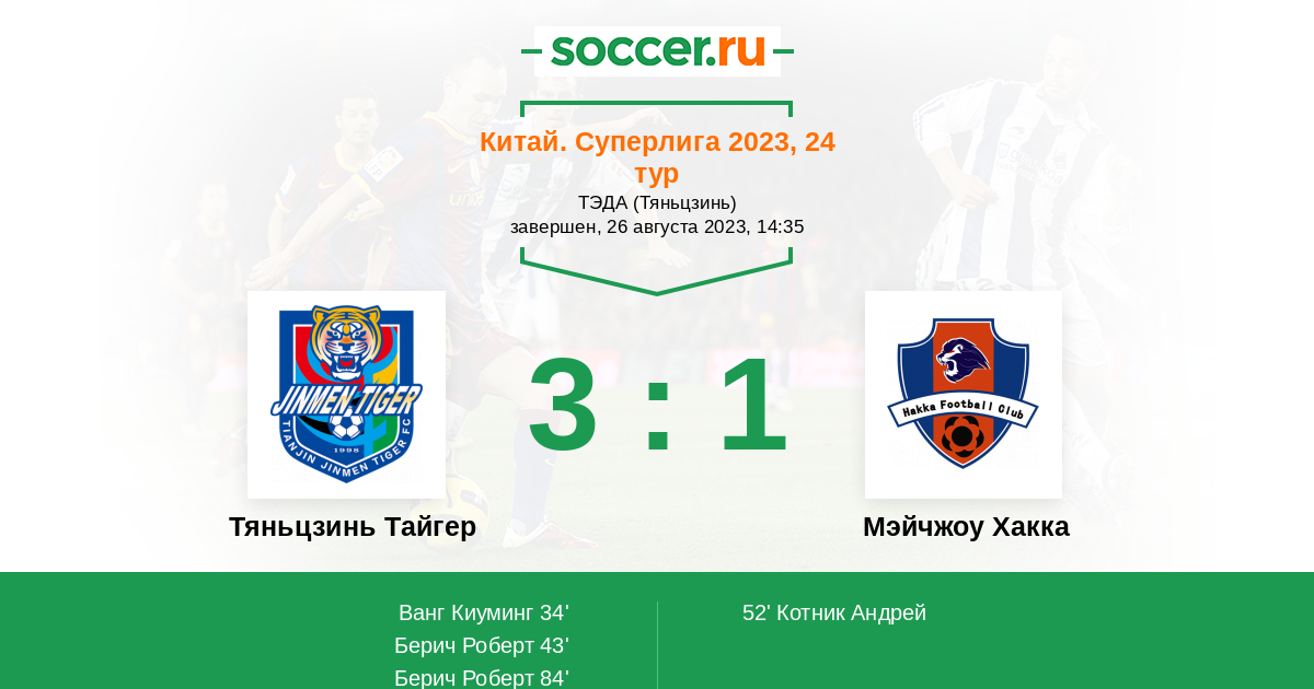 Тяньцзинь Тайгер - Мэйчжоу Хакка: обзор матча 26 августа 2023