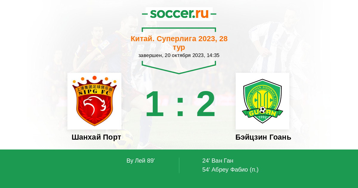 Шанхай Порт - Бэйцзин Гоань: обзор матча 20 октября 2023