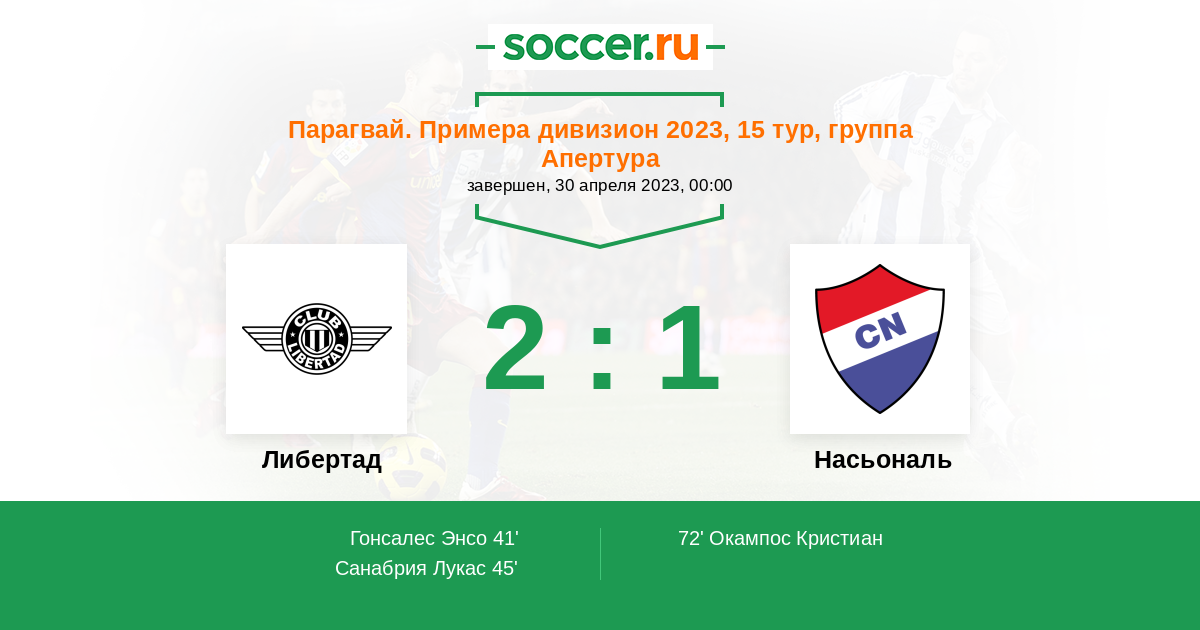Либертад - Насьональ: обзор матча 30 апреля 2023