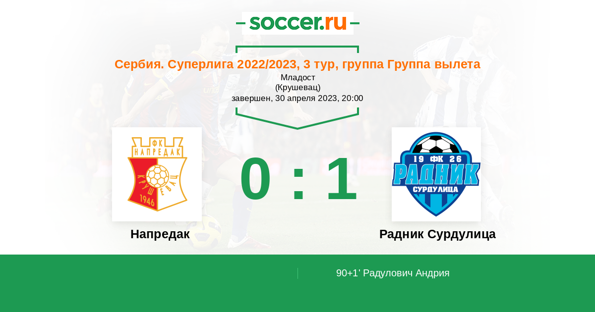 Напредак - Радник Сурдулица: обзор матча 30 апреля 2023
