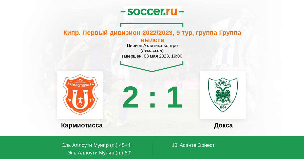 Кармиотисса - Докса: обзор матча 3 мая 2023