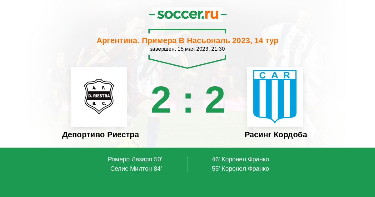 Депортиво Риестра - Расинг Кордоба: обзор матча 15 мая 2023