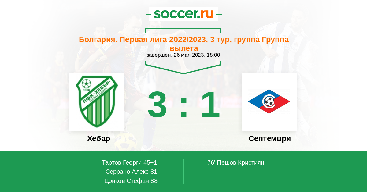 Хебар - Септември: обзор матча 26 мая 2023