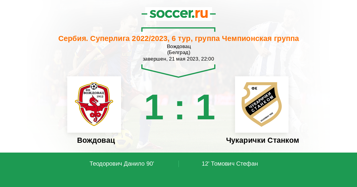 Вождовац - Чукарички Станком: обзор матча 21 мая 2023