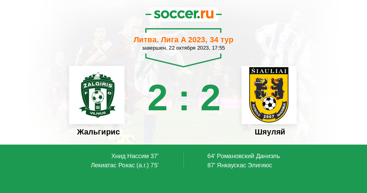 Жальгирис - Шяуляй: обзор матча 22 октября 2023