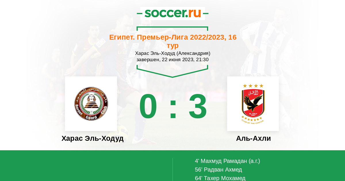 Харас Эль-Ходуд - Аль-Ахли: обзор матча 22 июня 2023