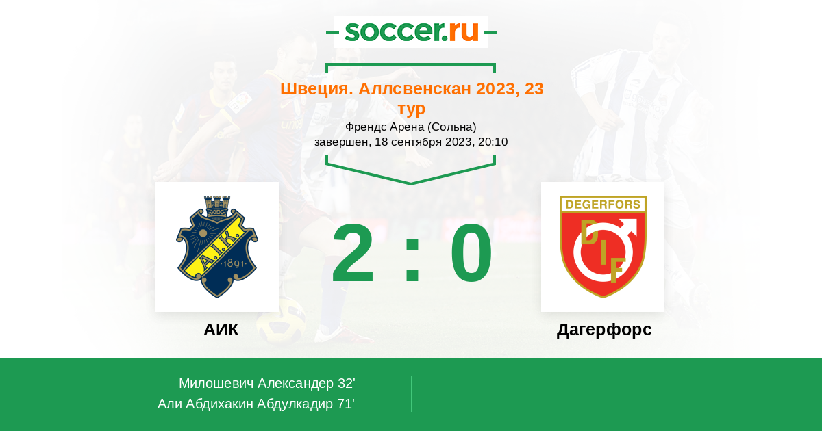 АИК - Дагерфорс: обзор матча 18 сентября 2023