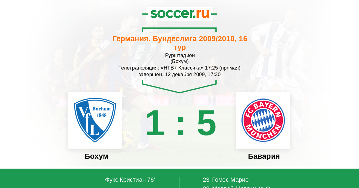 Бохум - Бавария: обзор матча 12 декабря 2009