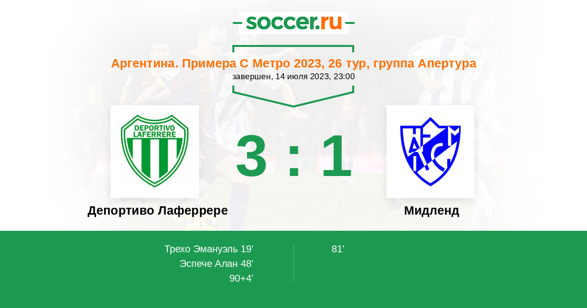 Депортиво Лаферрере - Мидленд: обзор матча 14 июля 2023