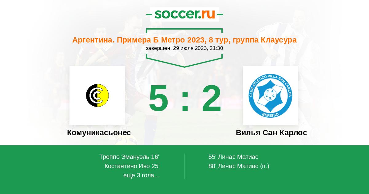 Комуникасьонес - Вилья Сан Карлос: обзор матча 29 июля 2023