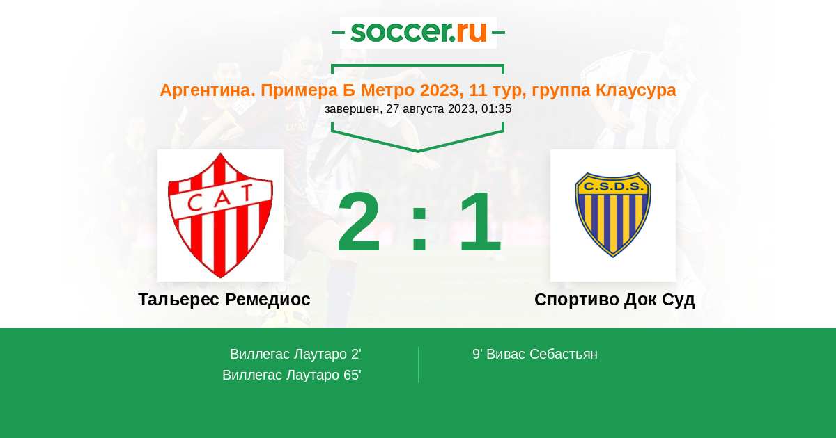 Тальерес Ремедиос - Спортиво Док Суд: обзор матча 27 августа 2023