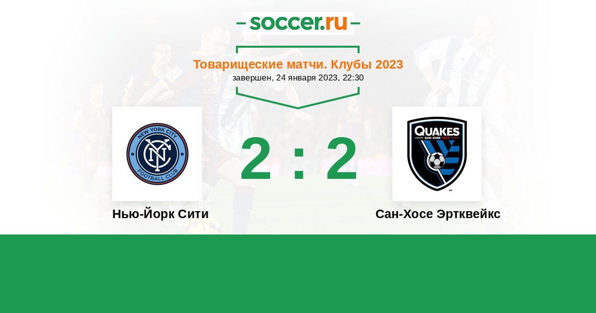 Нью-Йорк Сити - Сан-Хосе Эртквейкс: обзор матча 24 января 2023