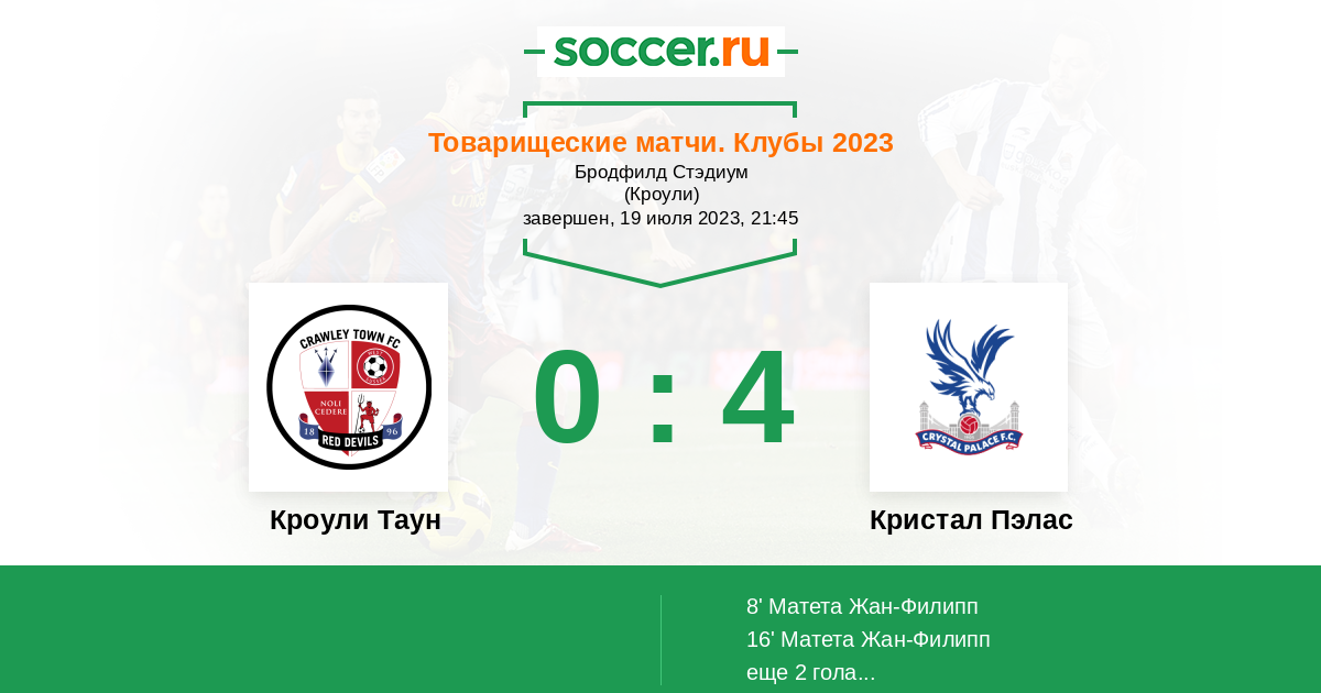 Кроули Таун - Кристал Пэлас: обзор матча 19 июля 2023