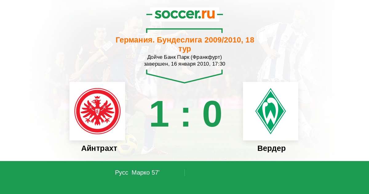 Айнтрахт - Вердер: обзор матча 16 января 2010