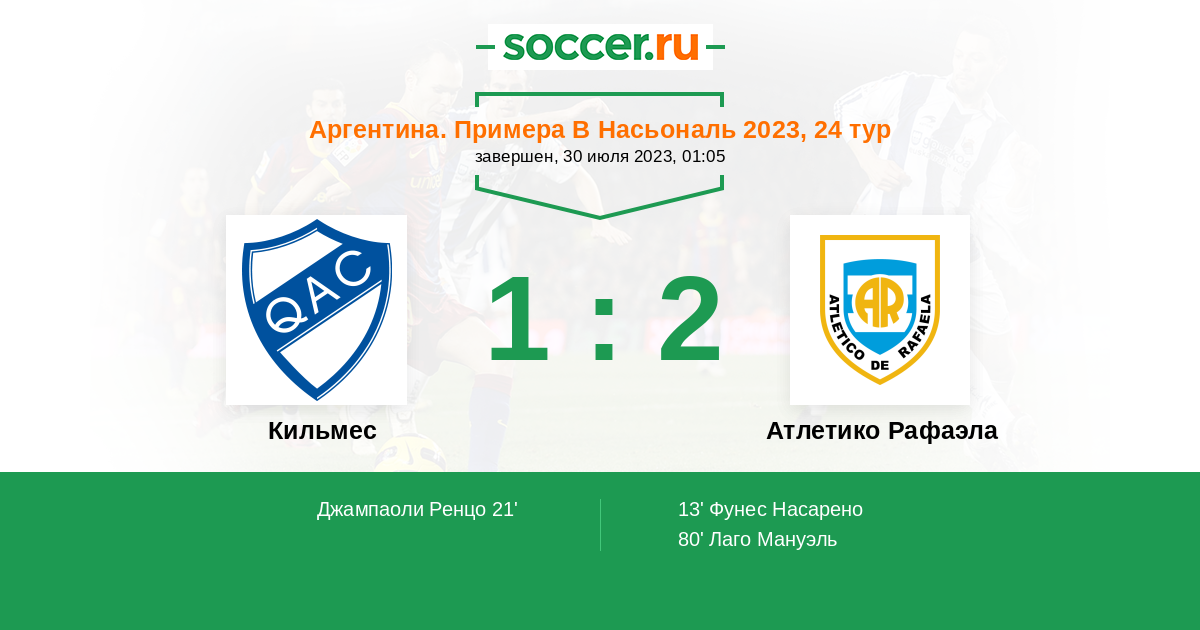Кильмес - Атлетико Рафаэла: обзор матча 30 июля 2023
