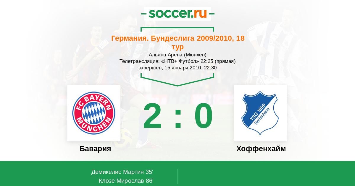 Бавария - Хоффенхайм: обзор матча 15 января 2010