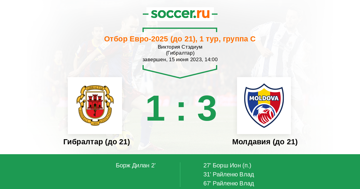 Гибралтар (до 21) - Молдавия (до 21): обзор матча 15 июня 2023