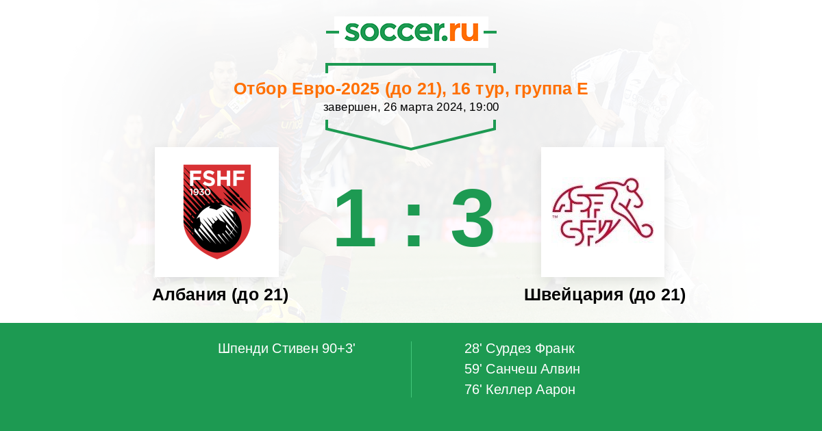 Албания (до 21) - Швейцария (до 21): обзор матча 26 марта 2024